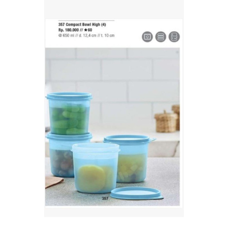 Produk terdiri dari 4 Pcs Compact Bowl High650 ml; d. 12.4 cm; t.