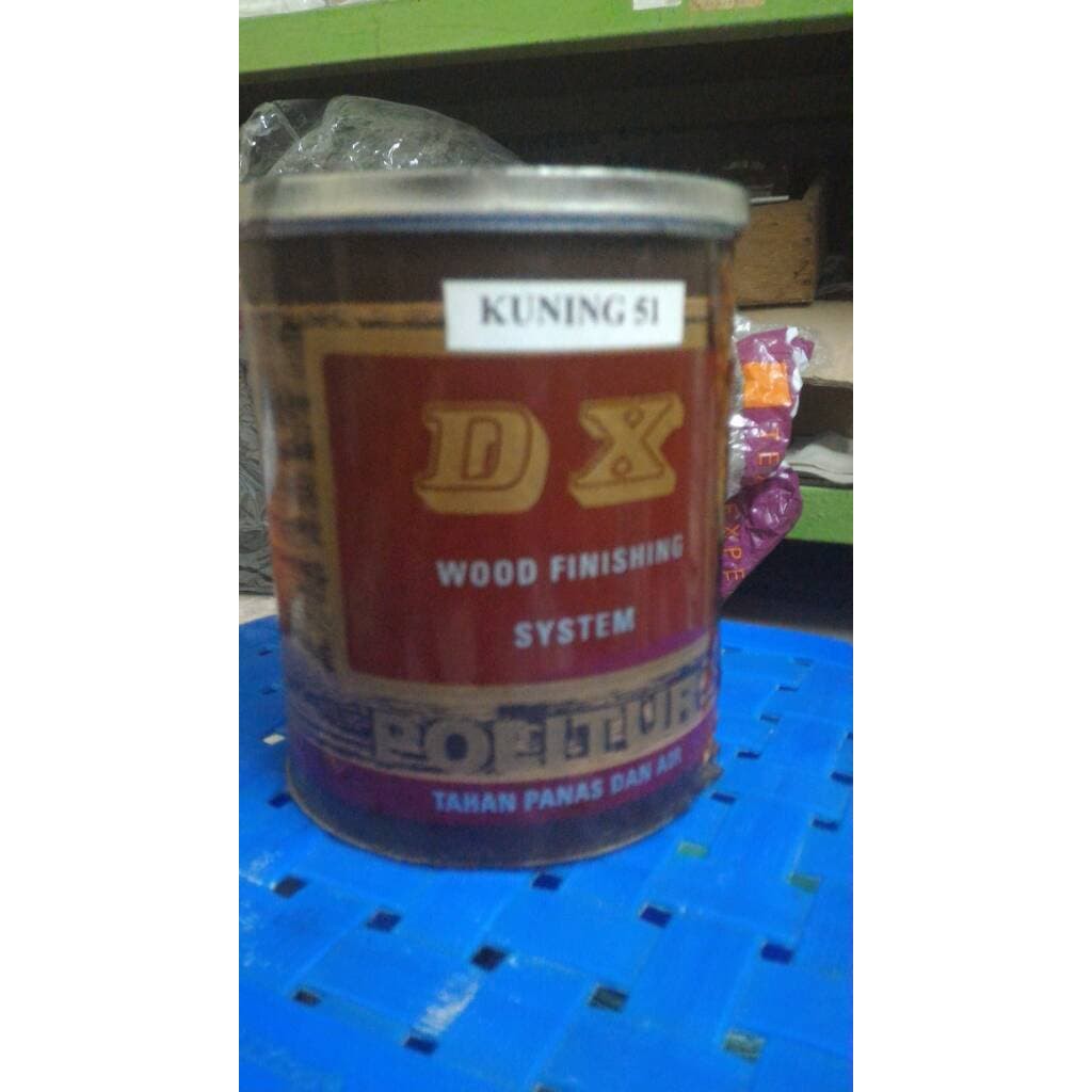 Politur Kayu DX tersedia warna dari natural, kuning, kuning tua.... bisa untuk outdoor maupun indoor. Langsung pakai tanpa campuran lain. mohon cantumkan warna di keterangan saat o