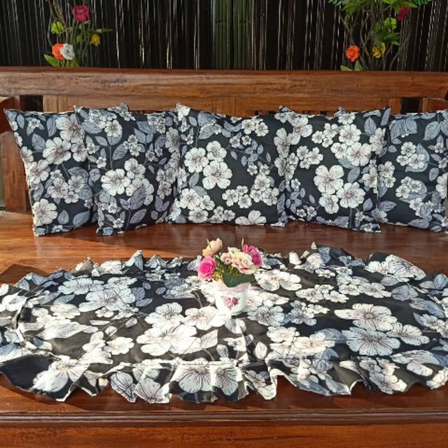 Sarung sofa buatan homemade konveksi rumahanSatu set terdiri dari:» 5 sarung bantal sofa ukuran 40x40cm» 1 taplak meja● gambar realpict dan langsung dr konveksi● cek ketersediaan stok sebelum che
