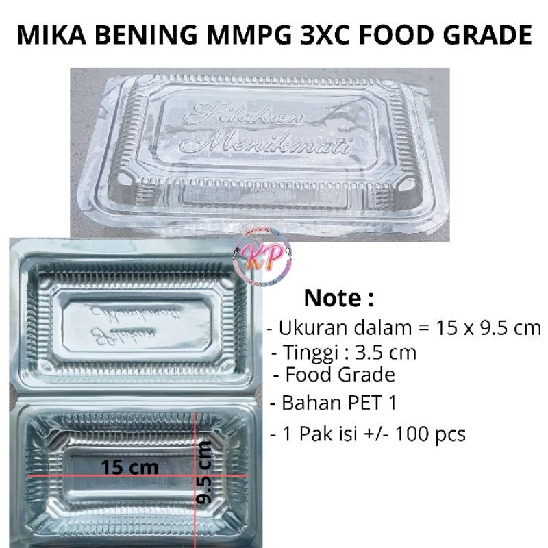 * MIKA PLASTIK BENING MMPG 3XCUKURAN LUAR : 18CM X 12CM ( LUAR )UKURAN DALAM : 15CM X 9.5CM ( DALAM )TINGGI : 3.5 CMHARGA PER PACK ISI 100 PCS#mikakue #mikakuemurah #mikakuetart #mikaplastikkue #mikapuding #mikanasi #mikamak