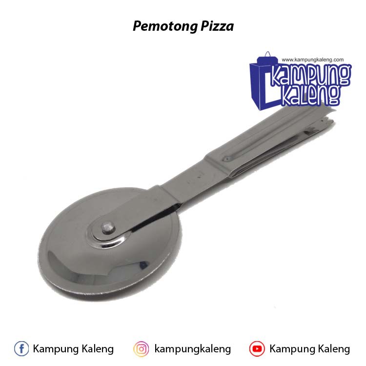 Pemotong Pizza, terbuat dari stainless. Terdiri dari pegangan dan roda, yang bisa didorong berputar, untuk memotong pizza Ukuran diameter pisau 5 cm, panjang pemotong