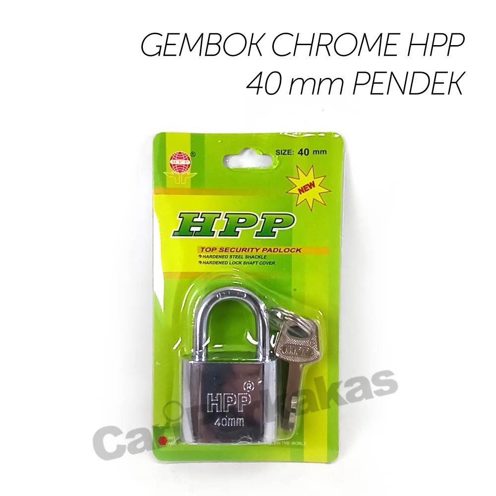 Gembok besi chrome HPP ukuran 40 mm leher pendek.Anak kunci dapat 3BARANG 100% SESUAI