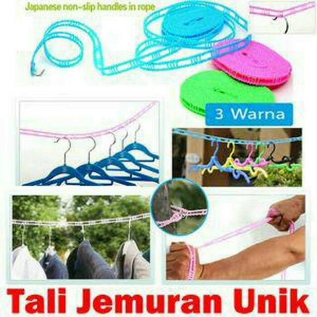 Nama Barang : Tali Jemuran 5mTali jemuran sepanjang 5 meter yang sangat praktis, mudah penggunaannya dan sangat kuat. Apabila tidak dipergunakan bisa dilepas sehingga tidak menggangguCara pemasangannya sangat mudah tinggal kaitkan bagian ujung dengan pengait stainless steel yang sudah disiapkan ( bisa dicek pada gambar ).Tali ini sangat kuat, selain untuk jemuran bisa juga dipergunakan untuk keperluan lainnya seperti mengikat barang di motor dll.Selain untuk dipergunakan untuk jemuran di dalam rumah, karena bentuknya yang praktis dan panjang, sangat bermanfaat apabila dibawa saat berkemah, travelling, atau kegiatan outdoor lainnyaSize : 500 x 1.5 cmMaterial : Tali Tambang / Tampar + Pengait dari Stainless SteelUntuk Warna tidak bisa dipilih, akan dikirimkan secara random.Produk Non GaransiNo ComplainNo ReturNo Tukar #talijemuran #talijemuranunik #talijemuran5m #clothe