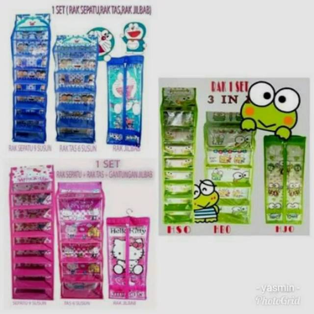 Paket Rak Gantung Karakter 3in1PAKET RAK SET 3IN1 ORGANIZER HBO HSO HJO KARAKTER PAKAI RESLETINGKARAKTER YANG READY :HELLOKITTYDORAEMONKEROPPISudah TERMASUK 3 jenis Barang dengan karakter serasi- HJO karakter : Gantungan Hanger Jilbab Oraganizer (PAKAIRESLETING)- HBO karakter ( ukuran 46 x 16 x 145cm) : Gantungan Tas Organizer (PAKAI RESLETING)- HSO (karakter 30 x 13 x 128cm) : Gantungan Sepatu Organizer (PAKAI RESLETING)- SEKAT kuat- Motif KARAKTER dan warna antara HJO + HBO + HSO selalu sama.- Rak Jilbab HJO KARAKTER nya : 6 shape- Rak Sepatu HSO KARAKTER nya : 9 kotak- Rak Tas HBO KARAKTERNYA nya : 5 kotak besar + 1 kotak kecilProduk Non GaransiNo ReturMEMBELI = SETUJU #rakkosmetik #rakobat #rakgantung #rakserbaguna #rakmurah #rakportable #rakgantungkarakter #raktas #rakjilbab #raksepatu #rakhelm #paketrakgantung #hso #hbo