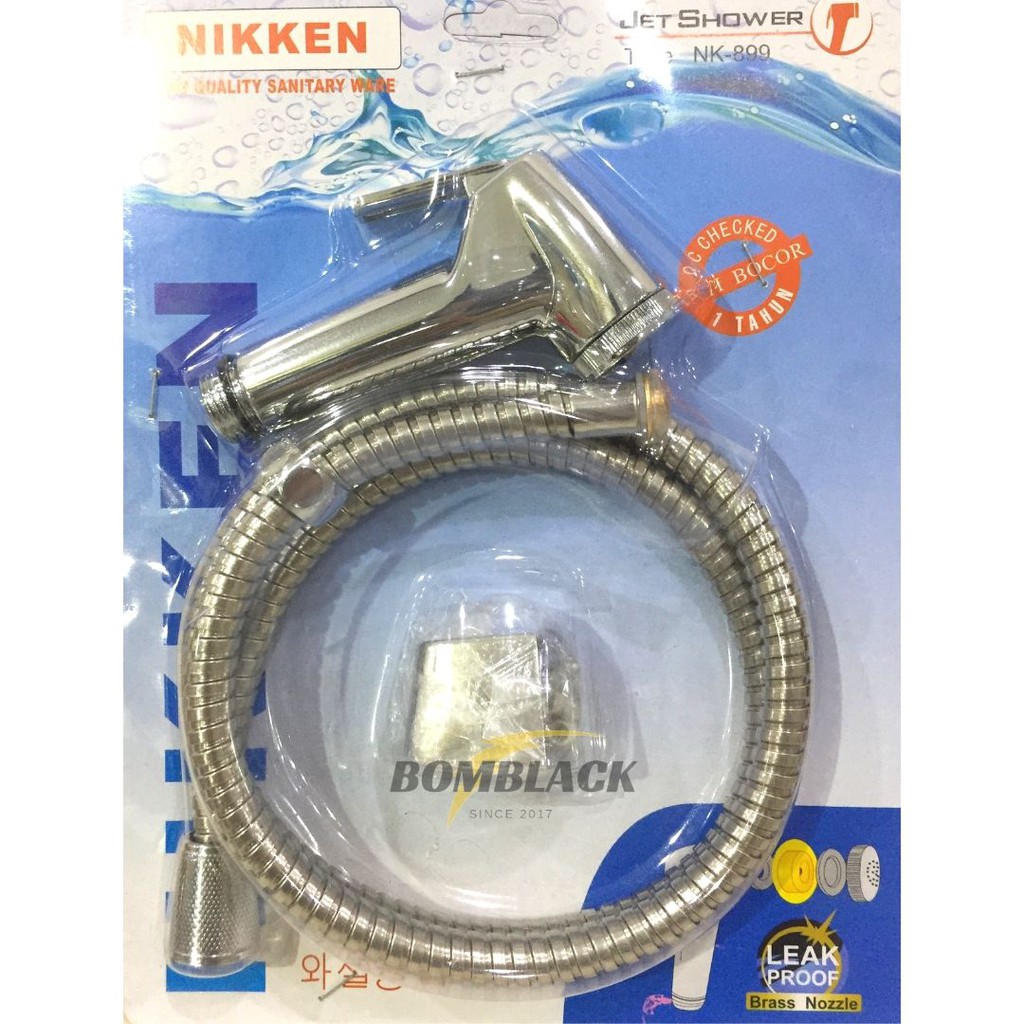 Semprotan Toilet Besi Jet Shower Cebok Chrome Selang Flexible NIKKEN- DESKRIPSI PRODUK :* Merk : Nikken* Bahan : Chrome / Silver* Panjang Selang : 1,2 meter* Selang lentur tidak kaku.Ambil banyak jadi lebih MURAH, tersedia harga GROSIR :DHarga murah barang berkualitas, Fast respond dijamin puas!- BOMBLACK S