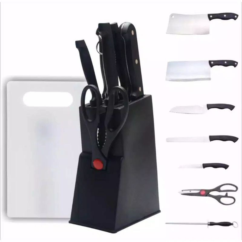 Berguna untuk memotong sayuran , daging, buah, bawang, dan segala macam keperluan memasak, pisau tajam dan di lengkapi dengan talenan serta tempat/wadah pisau yang elegan dan menawan, sehingga dapur terlihat rapih dan mewah. Satu Set berisi :- 1 Chef's Knife ( Pisau Koki )- 1 Bread Knife ( Pisau Roti )- 1 Bone knife ( Pisau Tulang )- 1 Utility Knife ( Pisau Sehari-hari )- 1 Paring Knife ( Pisau Pengupas )- 1 Scissor ( Gunting )- 1 Wood Block ( Tatakan Pisau )- 1 Talenan#pisau #pisaudapur #pisaubuah #pisauapel #pisauapple #pisaudaging #pisaumurah #pisaudapurmurah #pisaudagingmurah #pisauserbaguna #pisaudapurset #pisaudapurtajam #pisaudapurtermurah #pisaudapurset5macam #pisausetstainless #alatrumahtangga #alatrumahtanggamurah #barangb
