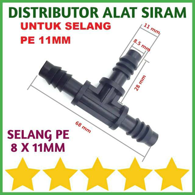 Konektor Tee 11MM (11X11X11MM)*UNTUK SELANG PE 11 MM UKURAN KONEKTOR TERSEBUT ADA DI STORE