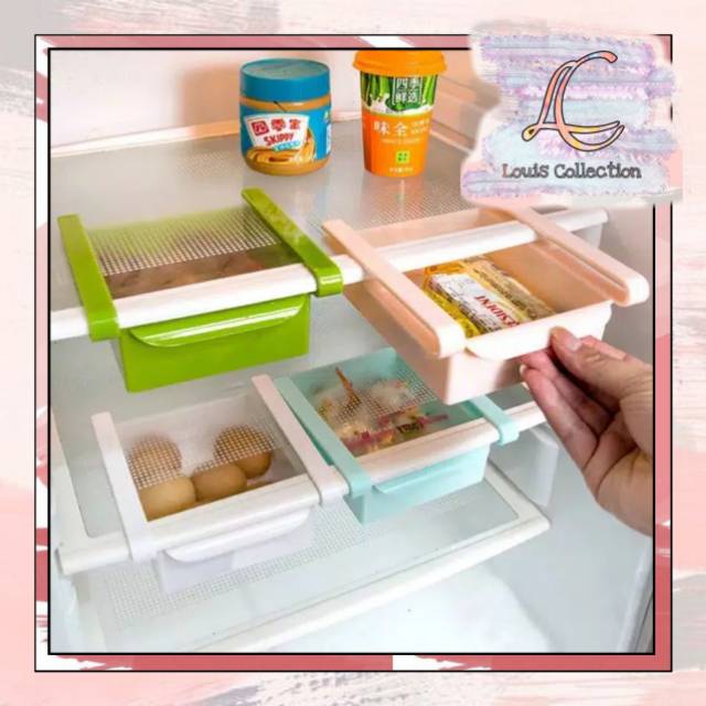 Rak kulkas adalah rak yang dijepit di sekat pembatas kulkas.Isi kulkas berantakan ?? Atau ruang kulkas gak cukup untuk menampung isi yang lebih banyak ?? Ibu-Ibu rumah tangga pasti sering mengalami hal ini. Pengen punya kulkas besar tapi mahal dan boros tempat.Gak perlu bingung, rak kulkas siap membantu anda mengatasi hal ini.Seringkali ruang antar pembatas kulkas tidak bisa dipakai maksimal karena sayuran atau buah yang disimpan di kulkas tidak bisa ditumpuk, bisa merusak kesegarannya. Kini anda dapat memanfaatkan ruang di bawah pembatas kulkas dengan rak kulkasDengan rak kulkas, sekat di dalam kulkas jadi bertambah, dapat diisi dengan aneka makanan kecil seperti telur, permen, kue, buah atau bumbu dapur. Isi kulkas jadi rapi dan muat lebih banyak.Material : Plastik ABSSize : 15.5 x 16.5 x 6