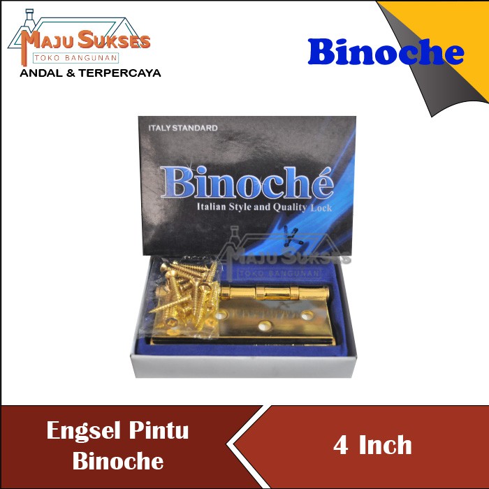 - Engsel Plat door Hinges Italy Standard merk BINOCHE - Ukuran 4"x3.0"x3.0 mm- kemasan 13.5x5x2.5 cm- dilengkapi sekrup- harga per pasang- cocok untuk pintu / jendela kayu / aluminium- bahan stainless tebal dan kuat- Warna kuning emas/gold DAN Putih/S
