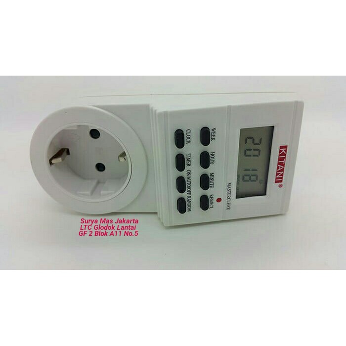 FUNGSI KONTAK TIMER DIGITAL 1. Mengatur waktu charger ponsel / ipad /ipad/mp4 kesayangan anda .anda tidak perlu khawatir batrai ponsel anda jadi kembung akibat over charge ( pengecasan terlalu lama), biasanya pada malam hari pada waktu kita sedang tidur , dengan alat ini anda bisa mengatur kapan waktu aliran listrik ke adaptor akan terputus melalui setingan yang anda buat dengan cara pengoperasianya cukup mudah 2. Mengatur lampu taman /halaman /teras kapan akan menyala dan padam 3. Menyalakan otomatis penyiraman air taman4. Memasak rice cooker pagi2 dengan menyiapkan berasnya di malam hari, sehinga tidak usah bangun lagi 5. Timer waktu untuk playstation6. Menyalakan lampu rumah sewaktu anda pulang kerja sampai larut malam atau sewaktu anda meningalkan rumah untuk pulang kampung. 7. Untuk bel sekolah 8. Untuk mesin air 9. Mengatur lampu neon box, lampu baliho.Dan masih banyak kegunaan lainnya baik untuk bisnis /rumah tangga agar dapat lebih menghemat listrik / mengotrol pemakaian listrik( tergantung kebutuhan ) Spesifikasi - voltage : 230/240VAC 50 Hz-Max load : 16A,3600W - min setting time : 1 minute - operating temp :-10 to 40c-Accuracy : 1min / month - battery backup : Nimh 1.2V >100 hours. - Dapat dioperasikan dalam 20 jeda waktu, misal pada saat kita sedang menyalakan pompa air, dapat kita setting dari jam 07.00-09.00 dilanjutkan lagi,dari jam 11.00- 13.00 begitu seterusnya sampai 20 Kali jeda waktu.(Jangan biarkan BATERAI handphone atau laptop anda DROP/ KEMBUNG/RUSAK karena overcharge /KELEBIHAN MENCHARGE yang menyebabkan anda harus menggantinya dengan yang baru atau replacementnya. Dan pastikan listrik tetap hemat pemakaiannya walau anda bepergian keluar rumah) barang tersedia boss , langsung dipesan , akan segera kami p