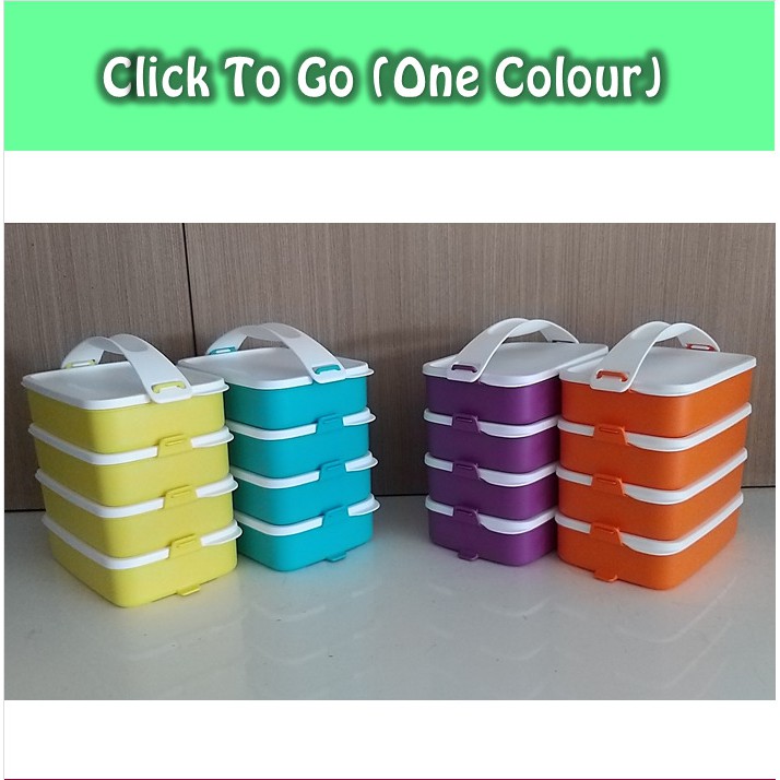 Click To GoUkuran : @900ml//22, 5 x 14, 4 x 6,1 cm4 lunchbox include Tutup dengan variasi warna canteekPasangannya Click To Go Beverage Dispenser “connected locked system”,Cocok untuk Mudik, Piknik, Rekreasi, Camping, HantaranMembawa bekal makanan anggota keluarga, praktis untuk dibawa dalam satu jijingan, dan dapat disusun sesuai kebutuhanNB : MOHON TANYAKAN KETERSEDIAAN BARANG TERLEBIH DA